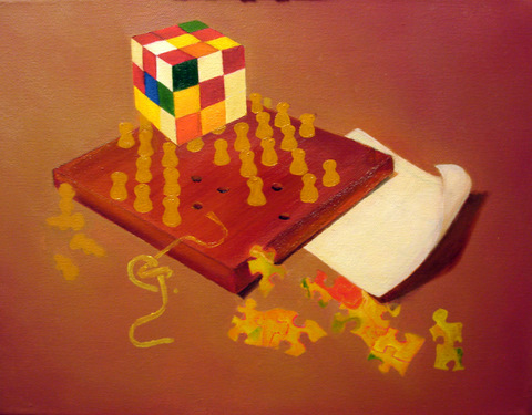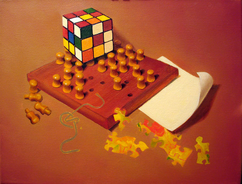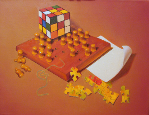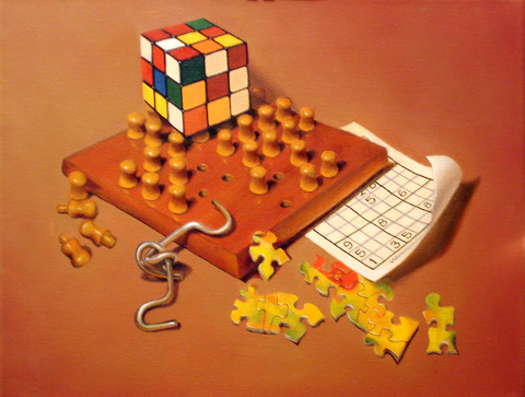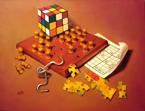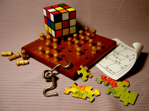 favourite puzzles - the jump-a-peg ... Rubik's cube ... Sudoku ... metallic